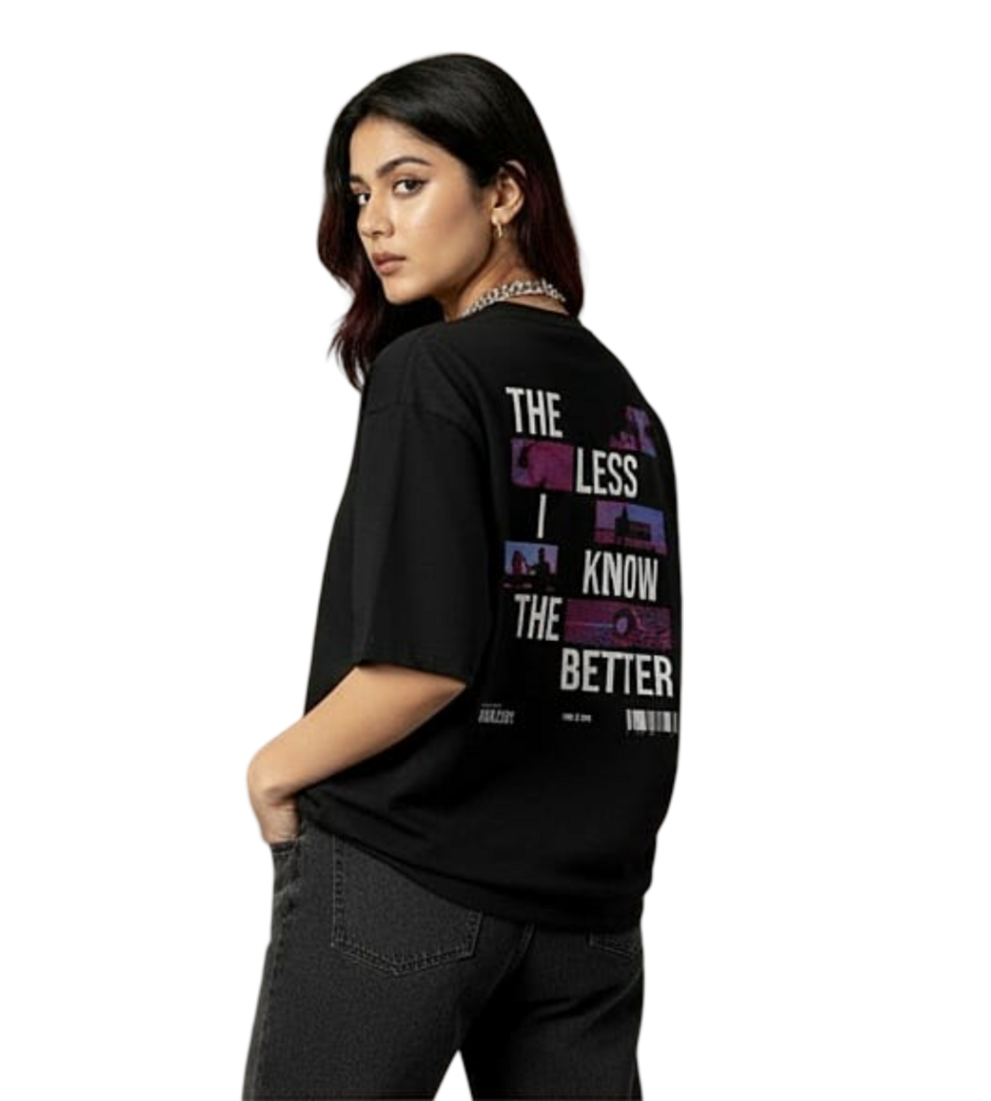 Designed as a unisex oversized fit, it suits all body types and provides a relaxed, contemporary silhouette. The bold, minimalist statement “The Less I Know, The Better” adds subtle attitude to your casual wardrobe, making it perfect for streetwear, layering, or standalone looks.